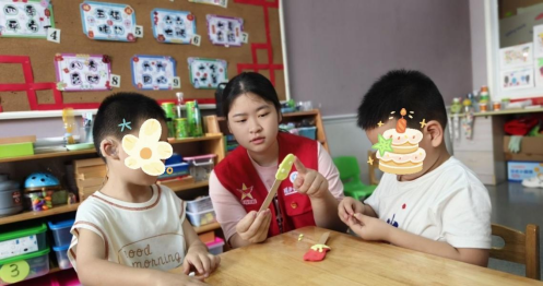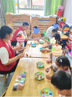 巧思流转启心智,游戏生辉筑桥梁。志愿者们在实践期间,充分发挥创意与爱心,为小朋友们精心打造了丰富多彩的游戏体验。志愿者们通过粘土做雪糕等手工精细活动,锻炼孩子们的手部精细动作,黏土在指尖舞蹈,幻化出清凉的“夏日雪糕”,于无声处雕琢精细动作的灵动,让孩子们在创作中感受乐趣与成就;通过组织棍子夹球、运球等运动游戏,协作的种子在碰撞与互助中悄然萌芽,让他们在团队配合中体会合作的力量,有效提升小朋友们的团队协作能力;还利用气球设计趣味游戏,斑斓气球轻盈跃动,每一次传递与脆响,都溅起纯粹的笑浪,编织成连接心灵的虹桥,让小朋友们在欢快的氛围中增强孩子们的反应速度与身体协调性。这些活动不仅丰富了孩子们的康复训练形式,更在欢笑中激发了他们的社交兴趣与自信心。