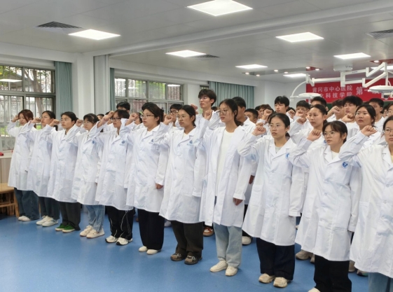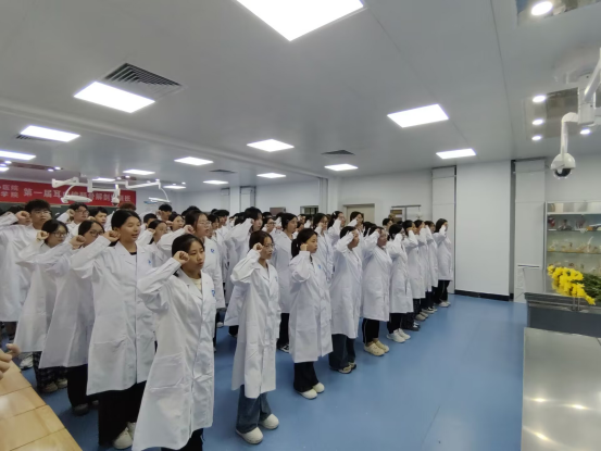 “健康所系,性命相托……”医学生誓词在解剖实验室中再次响起,在潘丹老师的带领下,全体新生举起右拳,目光坚定如炬。他们向崇高的大体老师许下承诺,也向未来的自己立下誓言:每一次走进这里,都将心怀敬畏,全情投入;每一次执起器械,都力求精准,精益求精。这铿锵的誓言,不仅是“把每一项平凡工作做好”的不平凡宣言,更是对医学初心最滚烫、最赤诚的坚守。