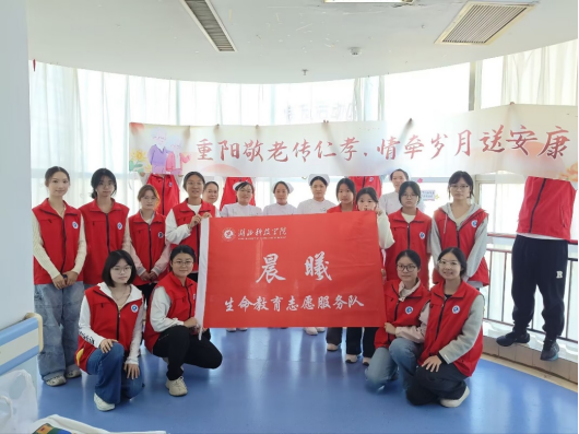 (通讯员 许小芹 熊昱涵 肖依 审核 姚兰)岁岁重阳,今又重阳。为弘扬中华民族“敬老、爱老、助老”的传统美德,湖北科技学院晨曦志愿生命服务队于10月28日下午前往咸宁市中心医院肿瘤科,成功开展了一场以“情暖重阳,爱满病房”为主题的关怀宣传活动。志愿者们通过送上节日礼品与温暖陪伴,为老人们带去关怀与鼓励。