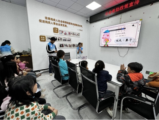 活动伊始,志愿者许一帆率先开展科普宣讲,借助PPT、趣味视频及动画素材,条理清晰地讲解肺部生理机能,用通俗易懂的语言拆解吸烟、二手烟及三手烟对肺部的医学危害,结合贴近孩童生活的案例深化知识传递,让抽象的健康常识变得直观易懂。宣讲过程中同步开启互动问答环节,围绕烟草危害、护肺方法等核心问题提问,孩子们踊跃积极,纷纷举手应答,思路清晰、表达流畅,答对问题的孩子收获志愿者精心准备的小礼品,眉眼间满是雀跃与自豪,在轻松鲜活的互动氛围里,逐步将拒烟护肺的理念根植心底,切实提升对烟草危害的认知度。