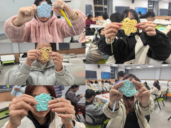 “线绕针稳、穿线心细”,志愿者将编织技法与“生命守护”联结:“每一次专注,都如未来守护患者的细致;漏针可补,正如挫折是成长养分。”学子们互相帮补漏针、分享技巧,在协作中感受生命联结的温暖。指尖温度驱散焦虑,大家愈发明白:生命需独自成长的坚韧,更需彼此支撑的温度,这正是“敬佑生命”的职业源头。