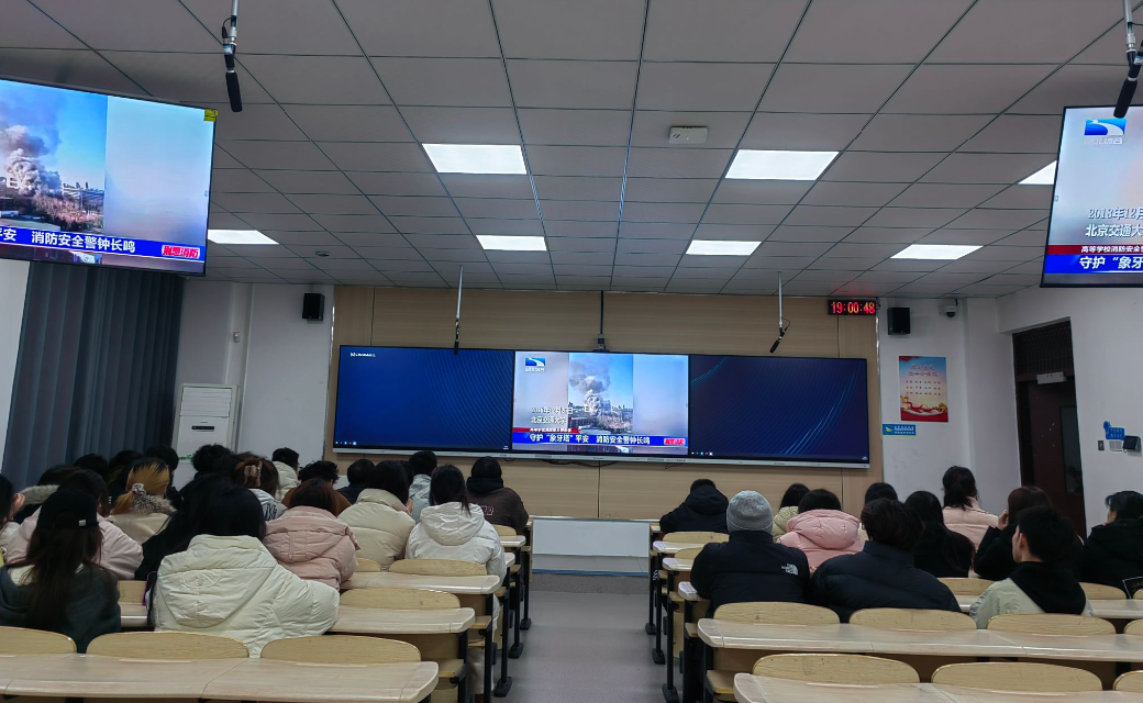 在消防安全教育环节,各班组织学生集中观看了《荆楚消防》安全教育宣讲视频。视频中,针对高校校园的典型案例剖析,直观展示了宿舍违规用电、楼道堆放杂物等常见隐患可能引发的严重后果。生动的影像资料帮助同学们深入学习了火灾预防、初期火灾处置以及火场逃生自救等核心安全知识。老师们还结合视频内容,现场讲解了灭火器、消火栓的正确使用方法,引导同学们将消防安全意识真正内化于心、外化于行。