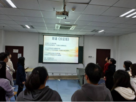 “长征,一条从史册蜿蜒出的英雄之路,长征,一段永不磨灭的永恒记忆……” 观影结束后,学生党员代表诵读诗歌《长征颂》。诗歌既追忆长征岁月里的不屈抗争,更宣示青年医学生 “以长征精神为帆,以专业知识为桨” 的使命担当,结尾处全体同学自发起立跟读,激昂声浪将活动氛围推向高潮,结尾的集体朗诵让长征精神中的家国情怀在集体共鸣中深深扎根。