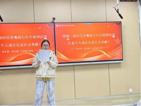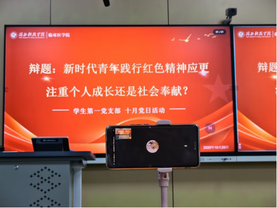 (通讯员 陈嘉煦 审核 任梦梦) 为深化新时代青年对红色精神的理解与践行,临床医学院学生第一党支部于10月29日在线上开展“新时代青年践行红色精神,应更注重个体成长还是社会奉献”主题辩论党日活动,在云端思想交锋中感悟信仰力量,推动红色精神在学思践悟中落地生根。
