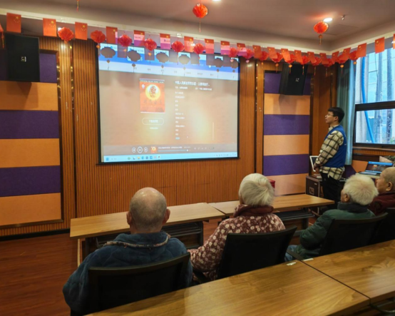 歌声共鸣,代际和声凝聚精神力量。合唱环节将活动推向高潮,《没有共产党就没有新中国》《大海航行靠舵手》等红色经典旋律响起,志愿者主动牵手老人共同演唱。歌声在养老院空间内回荡,掌声与合唱声交织,形成跨越年龄的情感共鸣,既传递了温暖,更强化了青年与老人的家国认同。