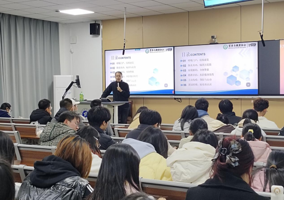 讲座内容详实,逻辑清晰,引领听众进行了一次系统而深入的呼吸道健康探索。付国臣老师首先从“呼吸门户”入手,形象生动地讲解了人体呼吸系统的精密结构,为后续知识铺垫了坚实基础。随后,讲座深入剖析了肺炎的“病因万花筒”,解读了细菌、病毒等常见病原体的特性,扫清了同学们在疾病认知上的盲区。
