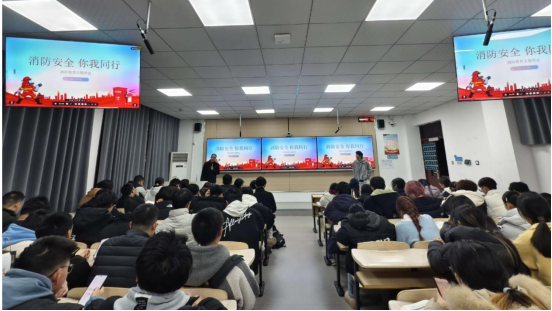 消防安全教育环节,各班详细讲解火灾常见成因及校园火灾隐患排查方法,特别针对宿舍违规使用大功率电器、私拉乱接电线等高发风险行为进行重点强调。班会现场,各班班导师一步步讲解干粉灭火器“提、拔、握、压”的正确操作步骤,并通过现场模拟的方式,让同学们更直观地掌握使用技巧。同时,各班系统讲授火场逃生自救知识,涵盖湿毛巾捂口鼻、低姿弯腰疏散、利用疏散通道与安全出口、封堵门缝等待救援等关键措施,明确火灾报警时需准确提供地点、火势、人员受困情况等核心信息,切实提升同学们的应急应变能力。
